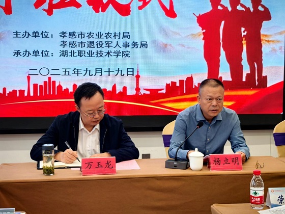 (本网讯 王菲 邓海波 赵晶)9月19日,孝感市2025年度高素质农民教育培育项目新产业新业态带头人(退役军人)培训班在孝昌县农夫子教育培训基地正式开班。本次培训班由孝感市农业农村局、孝感市退役军人事务局联合主办,湖北职业技术学院承办。来自孝感市各县市区的50名退役军人及军属参训,共同开启“从军营到田野”的技能提升之旅。孝感市退役军人事务局党组成员、副局长万玉龙,就业创业科科长万进,孝感市农业农村局社会事业促进科科长李浩,学校副校长杨立明,建筑工程学院院长郭自灿、党总支书记艾欢、副院长王菲,继续教育学院副院长汪向东等出席活动。活动由郭自灿主持。