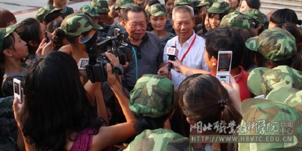 (魏迪仁老师、黄继光的弟弟黄继恕与湖北职院大学生在一起)