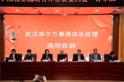 高明介绍了万豪国际集团的发展现状、产业布局及人才需求导向。她表示,企业发展离不开高素质人才支撑,而学校是人才培养的核心阵地,湖北职业技术学院在人才培养领域的成果备受认可,此次合作不仅将为订单班学生提供定制化的课程模块、企业导师指导、实习岗位及就业保障,还将与学校共同开发实训教材、共建实训基地,实现“人才培养与岗位需求无缝对接”,期待通过校企双方的协同努力,将订单班打造为人才培养的“样板工程”,为文旅行业发展注入新动能。
