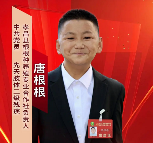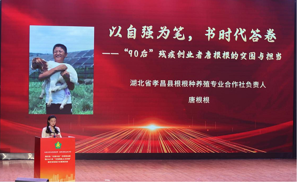 身残不坠青云志,返乡创业破万难。湖北省孝昌县根根种养殖专业合作社负责人唐根根,患有先天肢体二级残疾,四肢无力,身高不足1.5米,却用羸弱身躯勇挑脱贫重担。求职屡屡碰壁后,他毅然返乡创立生态羊场,创新“纯牛奶哺育羊羔”“四季防疫”等科学养殖技术,将最初仅有的40只羊,逐步发展成拥有千只规模的合作社,年收入突破90万元。不仅如此,他还心系乡邻,免费为21户残疾贫困户赠送母羊、倾囊相授养殖技术,带动每户年均增收3600元。这名“90后”从昔日需要帮扶的贫困户,转身成为带领群众脱贫致富的“领头羊”,他用弯曲却坚毅的脊梁,为乡亲们撑起了一片充满希望的小康天地。在2025年第七次全国自强模范暨助残先进表彰大会上,湖北省孝感市孝昌县根根种养殖专业合作社负责人唐根根获评“全国自强模范”。
