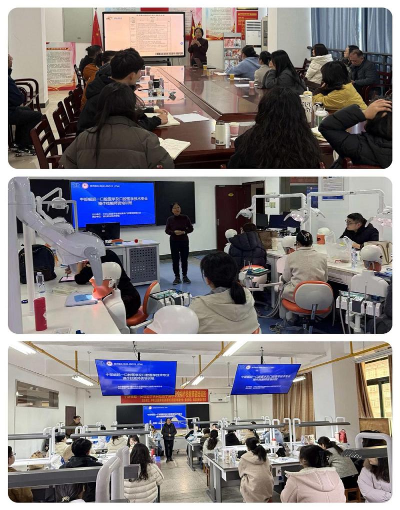 (本网讯  图/肖严  文/吴作红)12月12日至15日,由中华口腔医学会高职高专口腔医学教育分会主办、我校口腔医学院承办的“中部崛起——口腔医学及口腔医学技术专业操作技能师资培训班”在仁和楼口腔实训室举办。来自全国各地的口腔专业教师齐聚一堂,通过沉浸式技能实训与教学研讨,共同探索口腔职业教育提质增效的新路径,全面提升全国高职高专口腔医学及口腔医学技术专业师资实操教学能力,推动职业教育协同发展。
